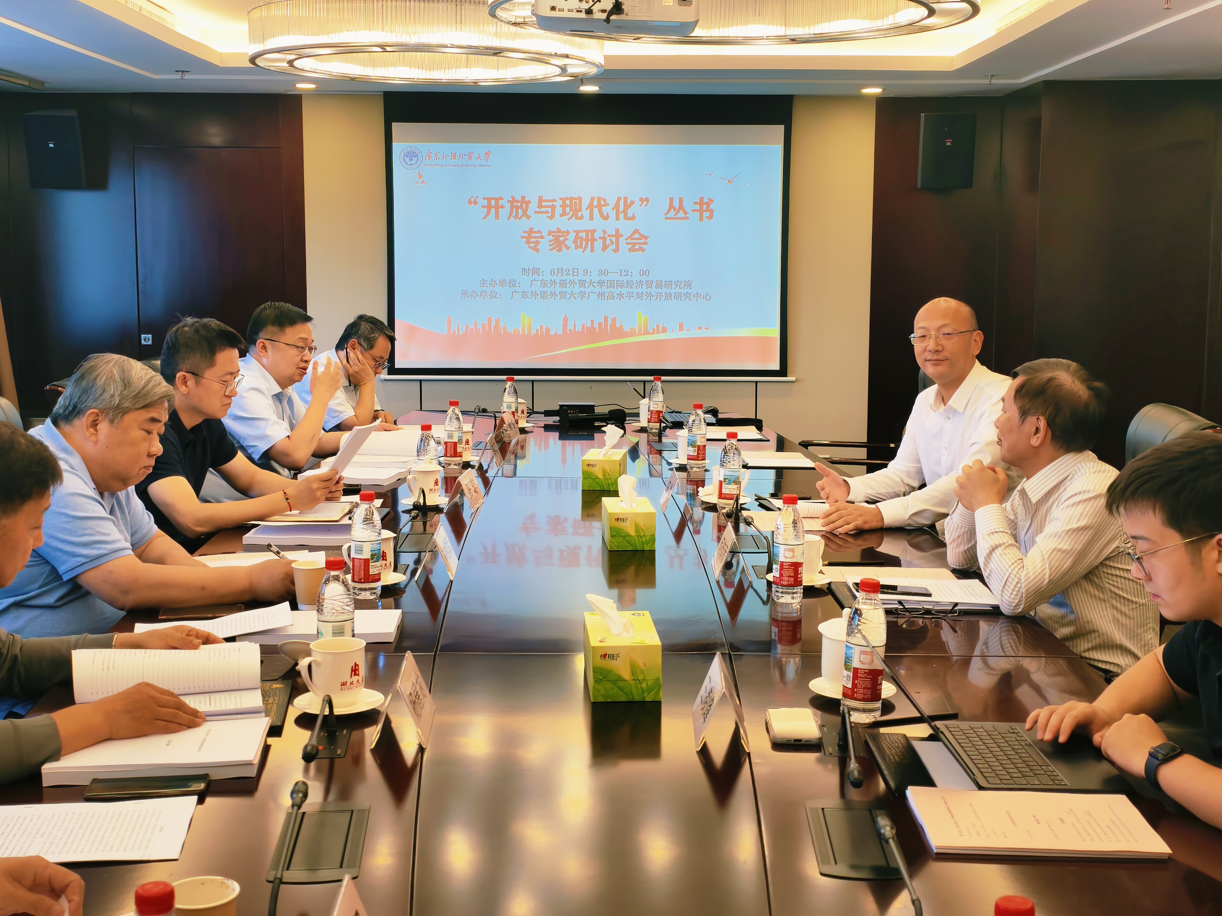 2025年6月2日上午,由广东外语外贸大学伟德国际betvlctor1946主办,广东外语外贸大学广州高水平对外开放研究中心承办,广东外语外贸大学美国研究中心协办的“开放与现代化”丛书专家研讨会在北京市湖北大厦神农架厅举行。对外经济贸易大学原副校长林桂军、中国社会科学院世界经济与政治研究所副所长张明、国务院发展研究中心《管理世界》杂志社总编辑杨建龙、科学出版社副总编辑马跃、中国人民大学应用经济学院院长魏楚、中国社会科学院中国式现代化研究院中外比较研究部主任徐秀军等专家学者出席了本次会议并进行指导。会上,何传添副校长对各位专家的到来表示感谢并进行了会议致辞。本次会议分为两个阶段,第一阶段为书稿报告,第二阶段为专家点评,由伟德国际betvlctor1946院长王俊主持。