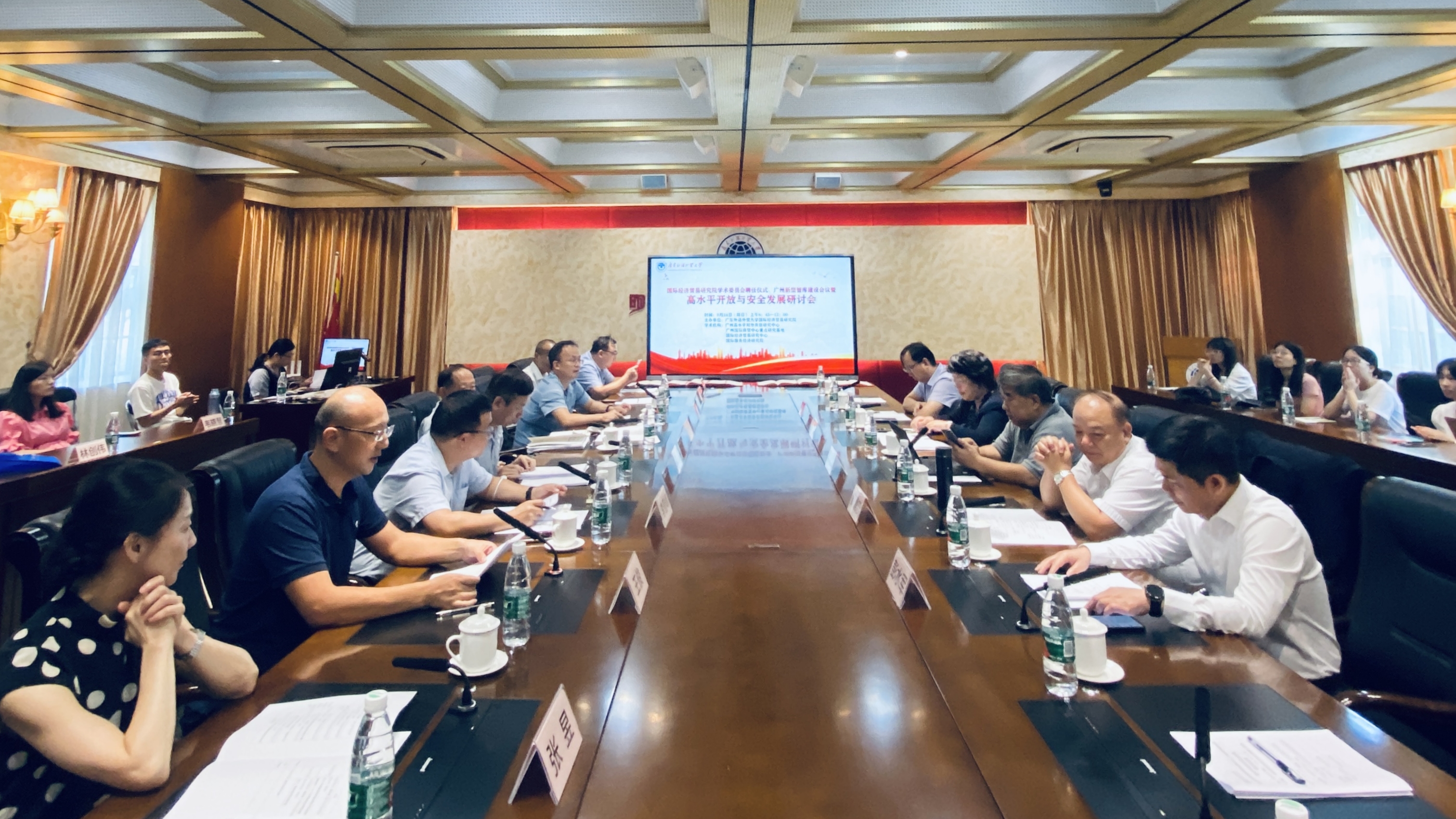 2023年9月24日上午,伟德国际betvlctor1946学术委员会聘任仪式、广州新型智库建设会议暨高水平开放与安全发展研讨会在广东外语外贸大学白云山校区行政楼第一会议室成功召开。本次研讨会由伟德国际betvlctor1946伟德国际betvlctor1946主办。与会来宾有对外经济贸易大学原副校长林桂军教授、广东外语外贸大学原副校长董小麟教授、上海对外经贸大学WTO研究院院长黄建忠教授、对外经济贸易大学国际经贸学院院长唐宜红教授、厦门大学经济学院副院长彭水军教授、中南财经政法大学教务部部长钱学锋教授、广东省政府发展研究中心城乡统筹研究处李登峰处长、伟德国际betvlctor1946党委常委副校长何传添教授、经济贸易学院肖奎喜教授、魏作磊教授、戴艳娟教授,以及我研究院研究员和校内硕博研究生共计50余人。会议分为四个议程。