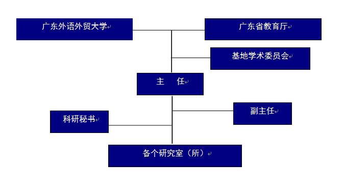 为了整合我中心研究力量,实现科研队伍的团队化,从而进一步凝练研究方向,明确研究目标和任务,特设立以下研究方向及其相应的研究室或者研究所(对外):WTO及国际经济法研究室(所)、国际金融研究室(所)、国际投资与跨国公司研究室(所)、国际区域经济研究室(所)、粤港澳经济研究室(所)、国际商务研究室(所)、国际会展经济研究室(所)(与广州白云国际会议中心有限公司合作),并聘请研究室领导和组成研究团队(参见图示)。
