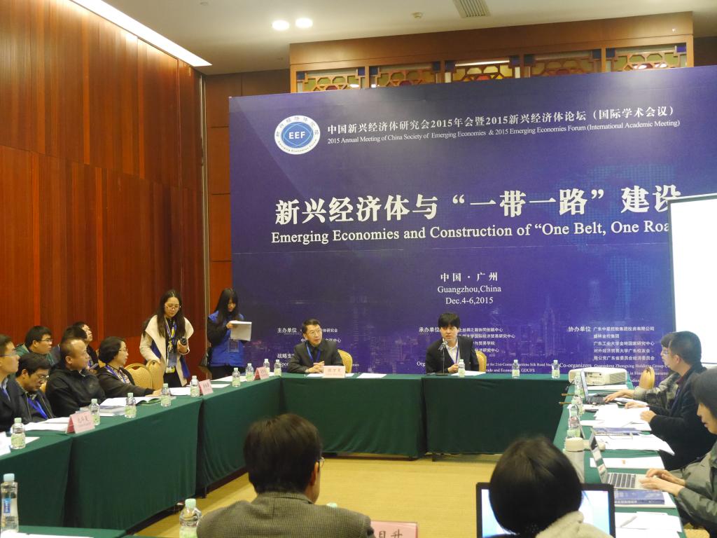 2015年12月4日至6日,中国(广东)新兴经济体研究会2015年会暨2015新兴经济体论坛(国际学术会议)在广州白云国际会议中心举行,会议的主题是“新兴经济体创新发展与中国自由贸易试验区建设”。此次会议由中国新兴经济体研究会、中国国际文化交流中心、广东工业大学主办,博鳌亚洲论坛研究院战略支持,广东省新兴经济体研究会、广东工业大学经济与贸易学院、广东外语外贸大学国际经济贸易研究中心等机构承办,广东工业大学金砖国家研究中心、广东外语外贸大学21世纪海上丝绸之路协同创新中心等机构协办。来自巴西、俄罗斯、印度、智利、墨西哥、印度尼西亚、吉尔吉斯共和国、韩国、孟加拉国、东南非共同市场、美国等国家和国际机构的专家和学者代表;以及中国社会科学院、中国国际文化交流中心、博鳌亚洲论坛研究院、国务院发展研究中心、国内60多所大学、研究机构的近300位专家、学者和企业界代表参加了此次会议。