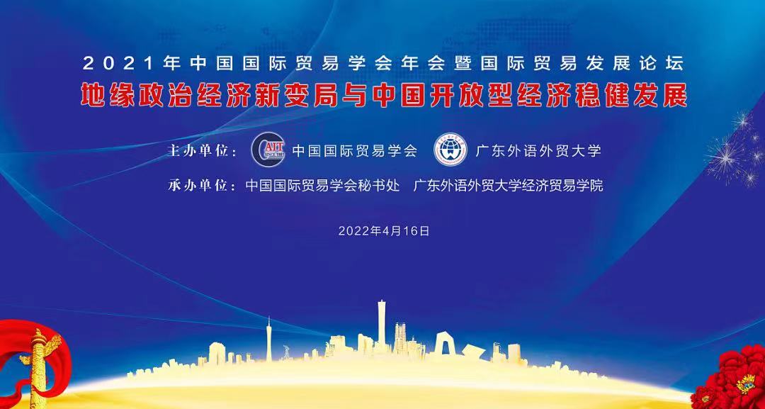 2022年4月16日,我中心专家陈万灵教授应邀出席“2021年中国国际贸易学会年会暨国际贸易发展论坛”并做学术报告。“2021年中国国际贸易学会年会暨国际贸易发展论坛”由中国国际贸易学会与广东外语外贸大学联合举办,商务部副部长钱克明、原副部长及WTO原副总干事易小准、中国国际贸易学会会长金旭、副会长兼秘书长边振瑚、副会长李钢和伟德国际betvlctor1946党委书记、校长石佑启、副校长何传添等嘉宾出席了会议。本次大会主题为“地缘政治经济新变局与中国开放型经济稳健发展”,采用线上与线下相结合的方式进行,就地缘政治经济大变局对中国对外贸易影响、外贸环境与中国开放型经济发展等议题展开讨论。