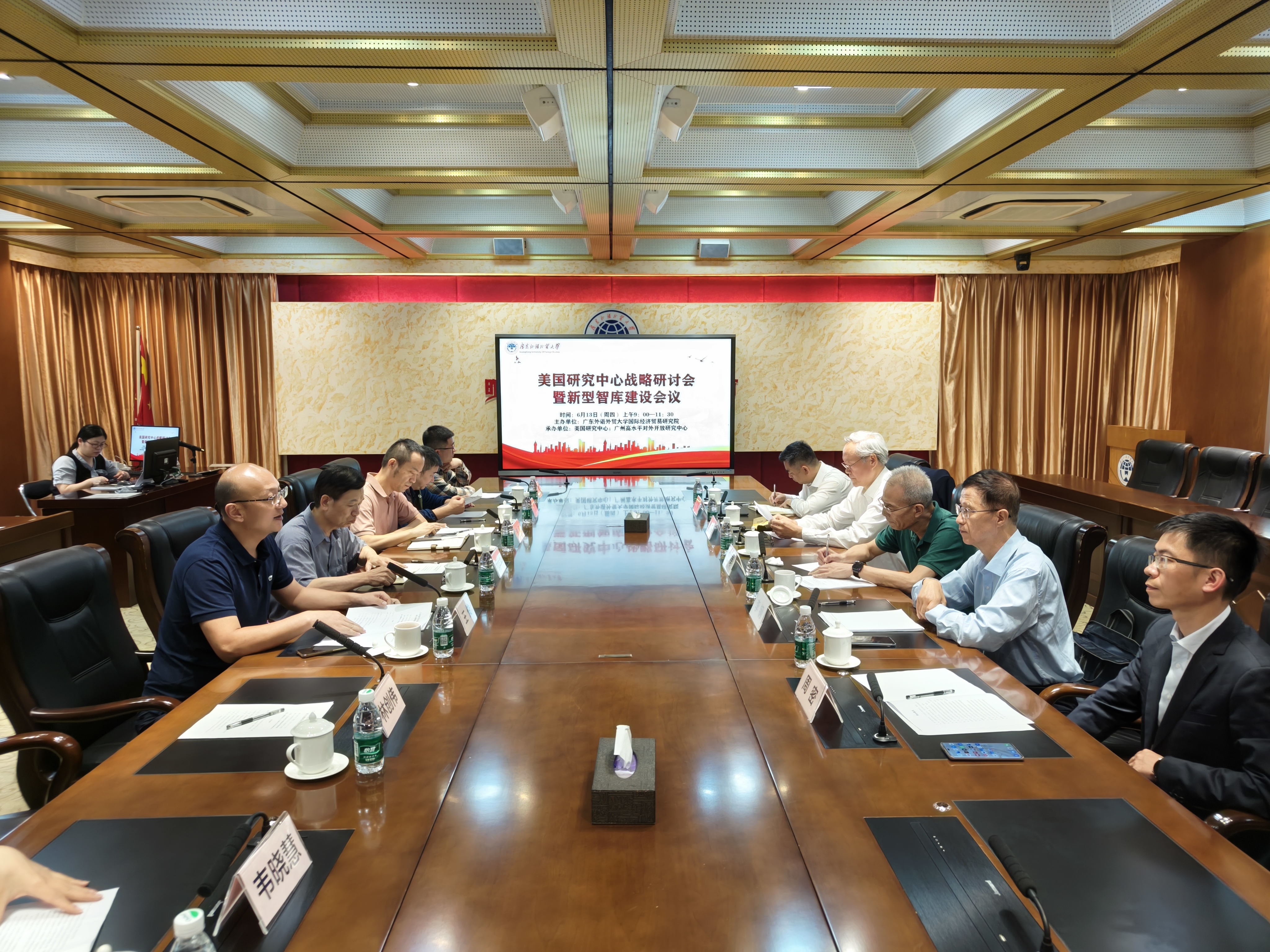 2024年6月13日上午,广东外语外贸大学美国研究中心战略研讨会暨新型智库建设会议在广东外语外贸大学白云山校区行政楼第一会议室举行,研讨会由广东外语外贸大学伟德国际betvlctor1946主办、美国研究中心与广州高水平开放研究中心(广州市新型智库建设单位)承办。省政府参事、广东省社科院原院长王珺教授,中国国际贸易学会副会长、商务部国际经济合作研究院原院长李钢研究员,教育部长江学者、广州商学院名誉校长李晓教授,商务部国际经济合作研究院美洲所副所长周密研究员,中国世界经济与政治研究所全球战略智库国际部主任赵海副研究员出席本次研讨会并进行指导。会上,何传添副校长对各位专家的到来致欢迎辞,接着王俊院长介绍广东外语外贸大学美国研究中心(以下简称“美国研究中心”)建设背景。
