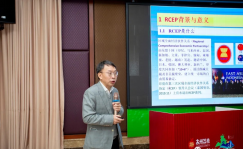 图为伟德国际betvlctor1946陈万灵教授在“广东省RCEP专题培训”首期培训班上授课